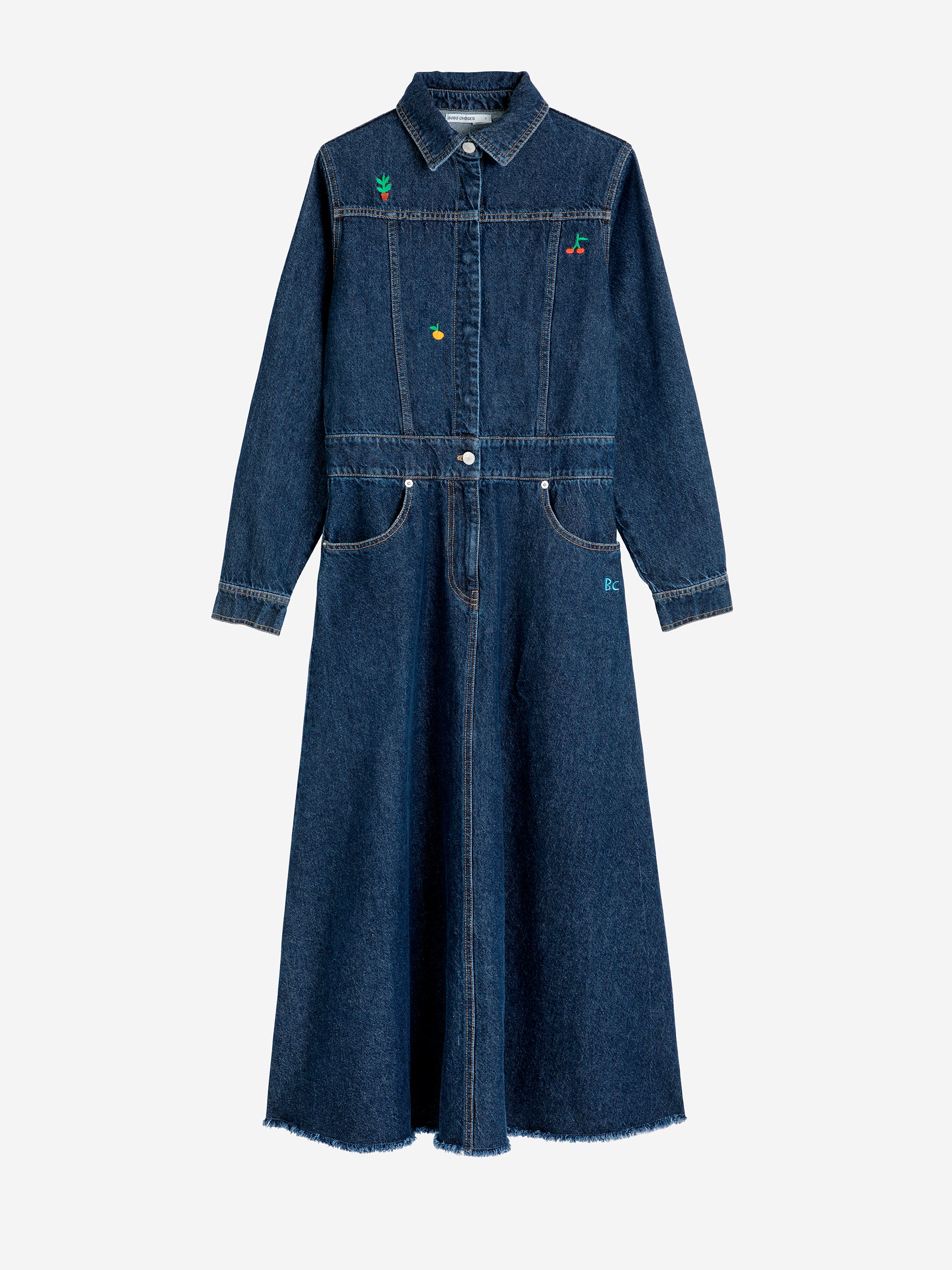 Denim embroidered flared long dress
