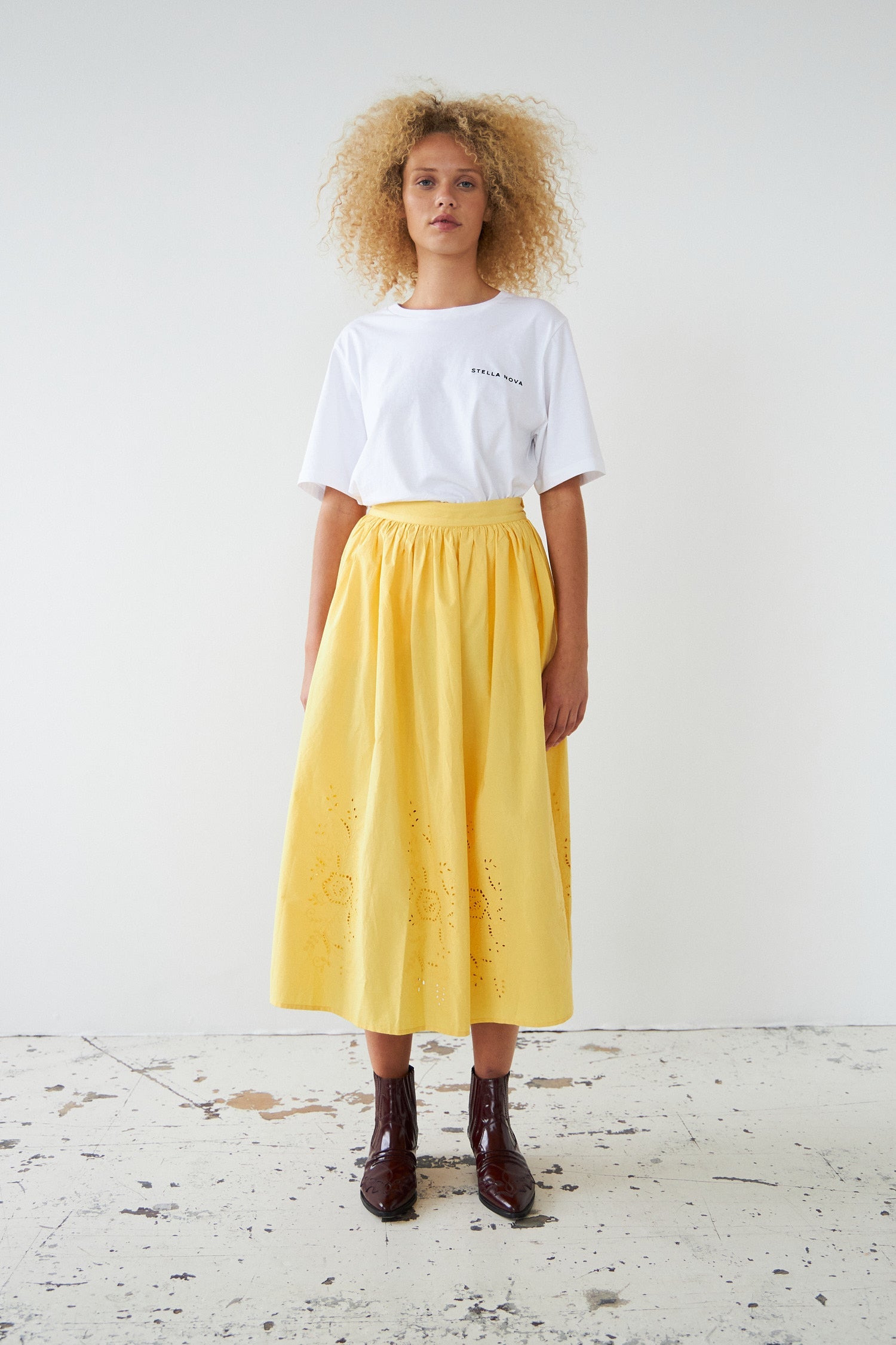 Embroidery Anglaise midi skirt